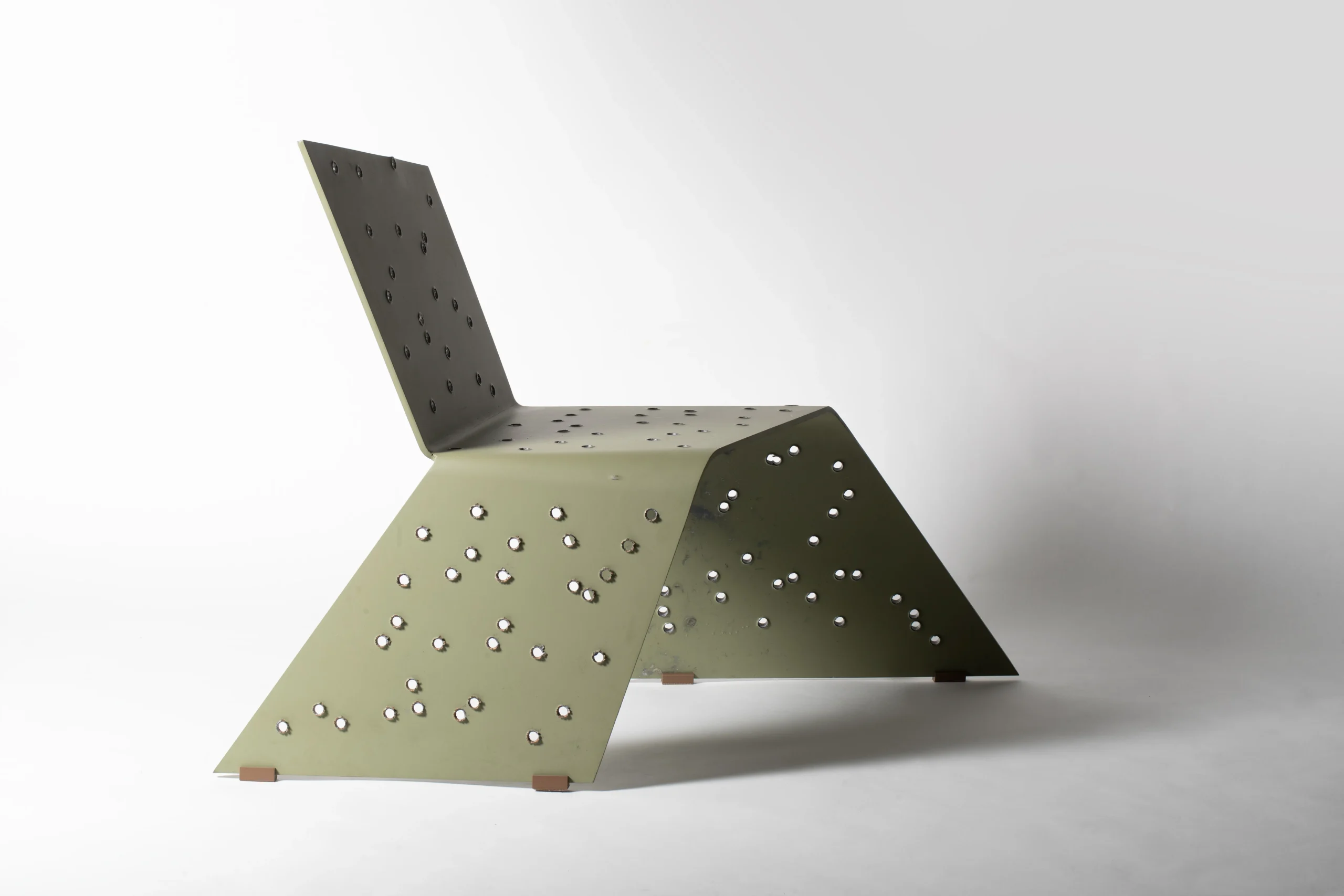 In this work, the chair becomes a contemporary individual: wounded, exhausted, yet still moving forward. Its bullet-pierced surface is not merely an aesthetic gesture but a literal trace of violence, a reminder that contemporary life is shaped by conflicts both visible and invisible.