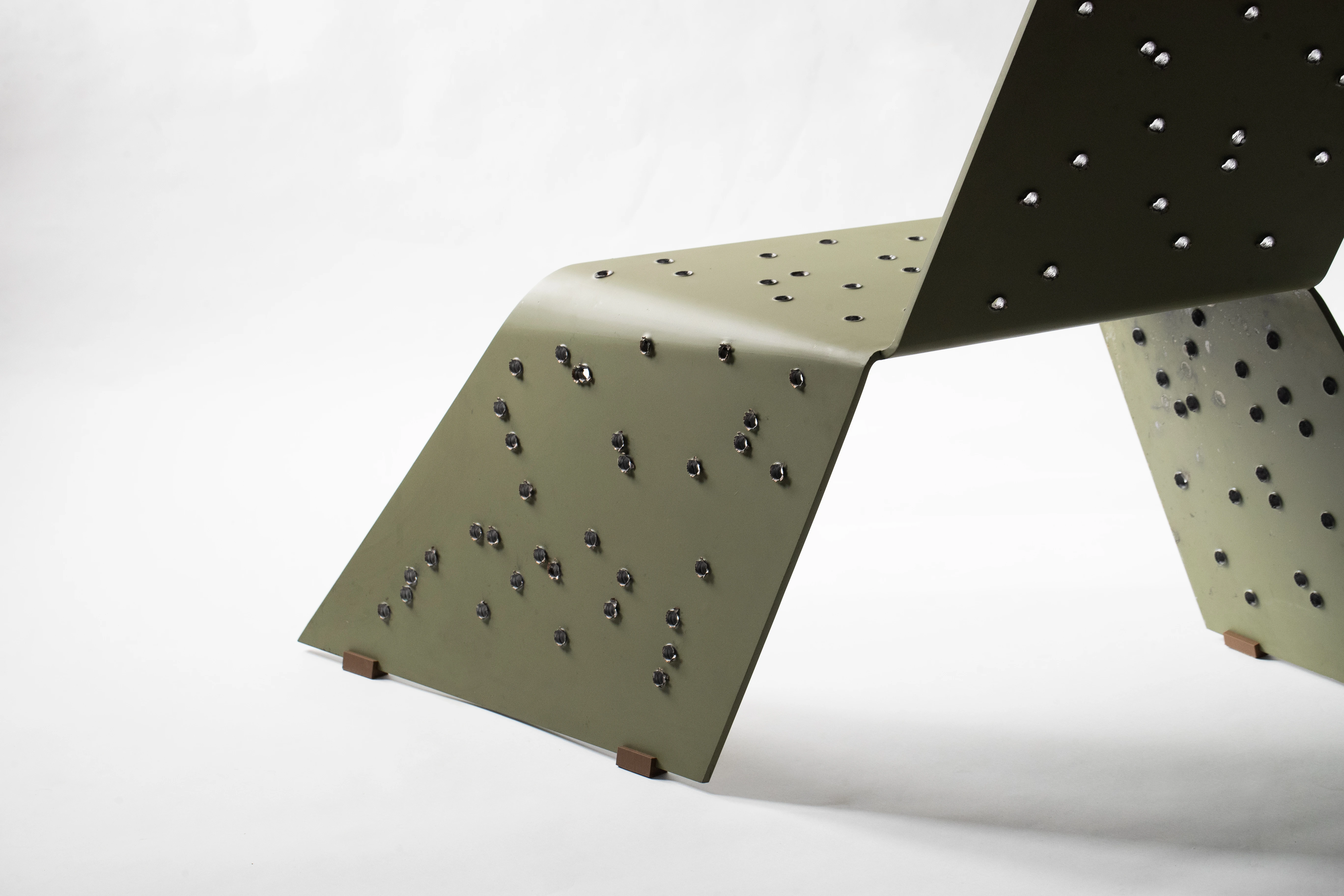 Defining Feature: 112 finished bullet holes piercing the structure.